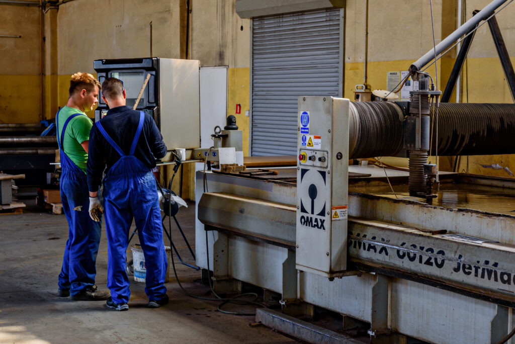 W przypadku cięcia na water-jet’ie również materiały niemetalowe takie jak ceramika, szkło, drewno, tworzywa sztuczne - Usługi cięcia kształtowników (profile, pręty, rury)